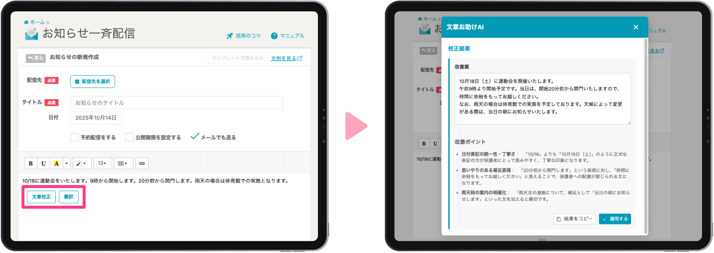 ご利用施設からのお声を受け、おたより、アンケートなど、保護者に連絡する際の文章を適切なものに