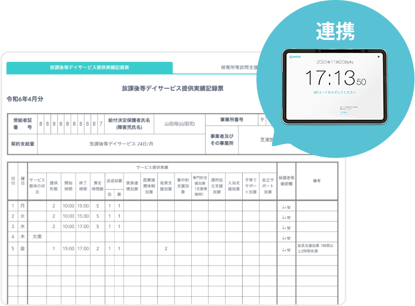以前は、国保連請求ソフトに、児童一人ひとりの入退室時刻を転記していましたが、自動反映で、転記ミスもなく作業も楽になりました。