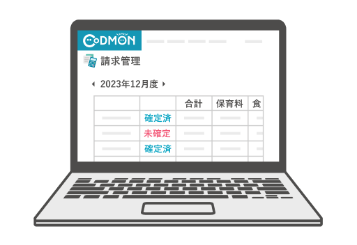 あらかじめ設定された保育料や、登降園時刻から算出された延長保育料などを元に毎月の請求を自動作成。園児 / 児童ごとに異なる設定の複雑な請求や施設独自の延長保育設定の自動計算にも対応しています。