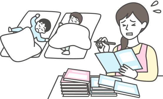 午睡データや給食報告は自動で反映でき、入力の手間が最小限になります。