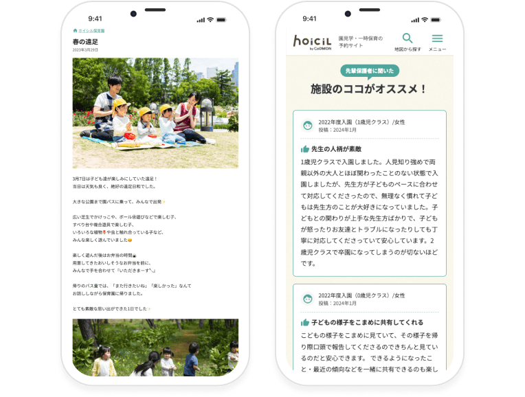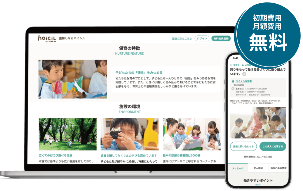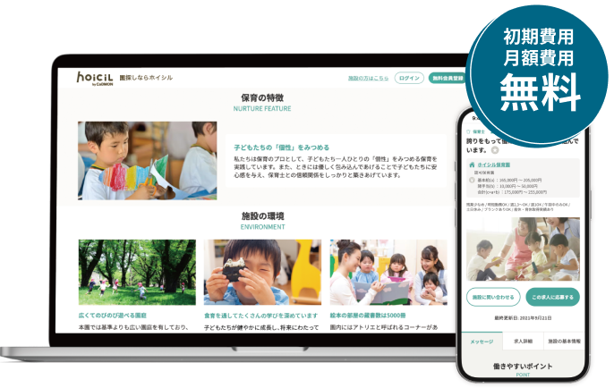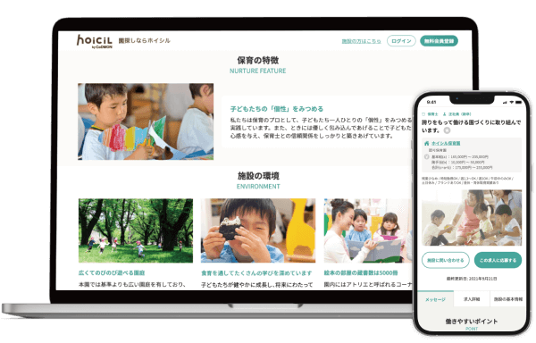 ホイシルでご紹介いたします。ホイシルをご利用いただく保護者や求職者に施設の魅力を効果的に伝えます。