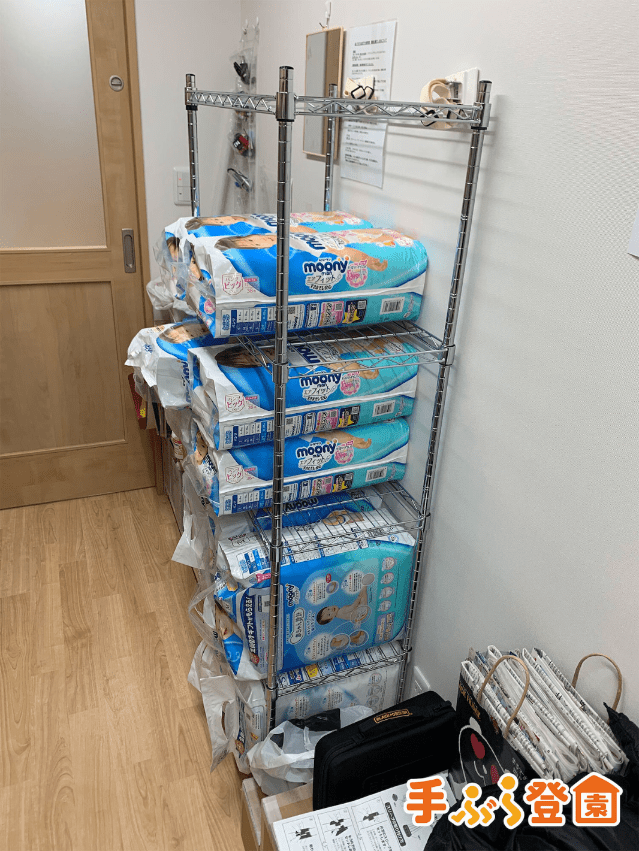 収納については、もともと配置していたトイレ周りの収納を見直すことに加え、新しくラックを購入し、在庫置き場を確保しましたが、最初に心配していたより省スペースに収まった印象です。環境差はありますが、姉妹園でも調整できたと聞いているので、小規模保育園でも多少の工夫で無理なく開始できるのではないかと思います。