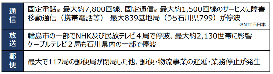 ▽能登半島地震のときの情報通信インフラの被害状況
